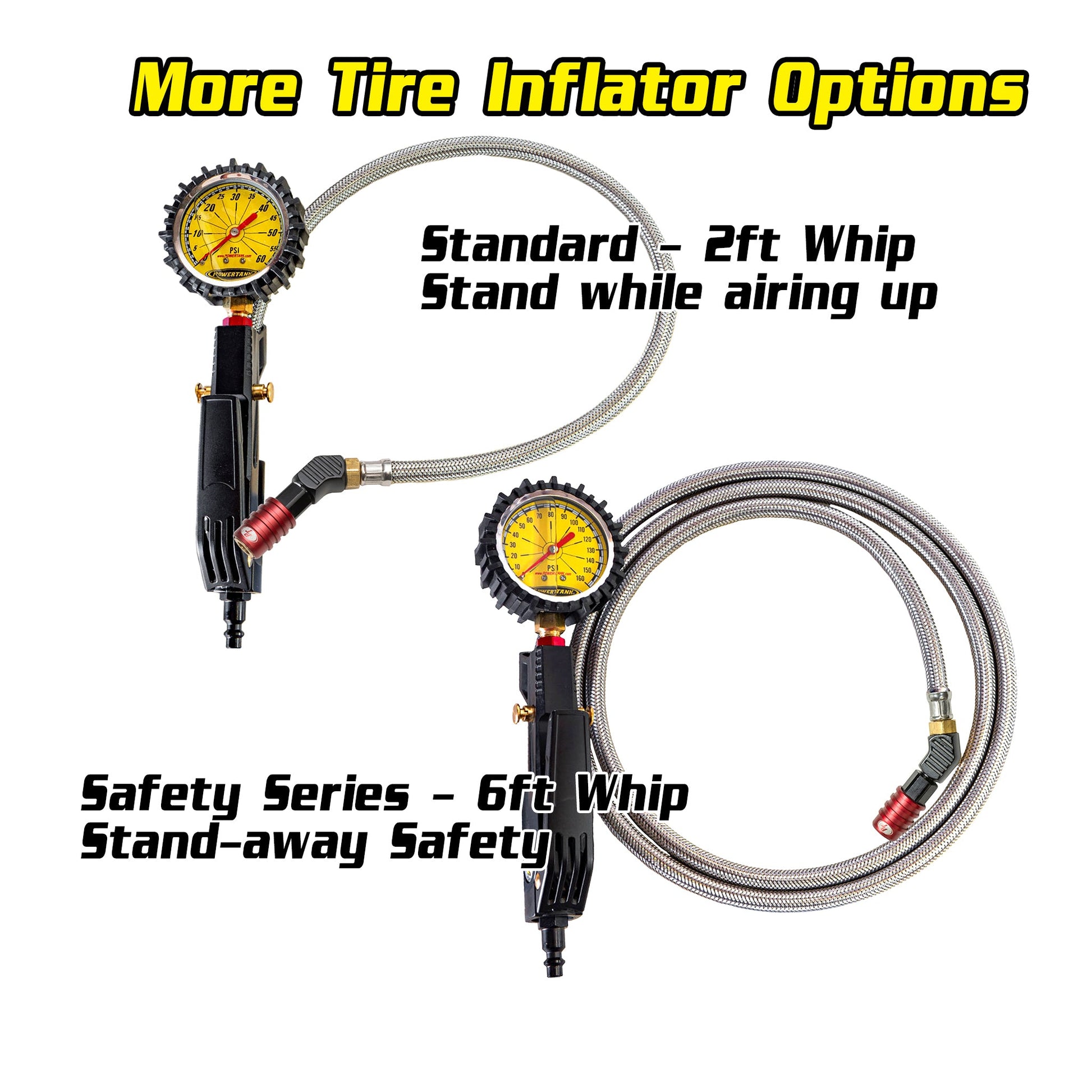 The included Ventoso Tire Inflator Gauge is the latest and greatest model after over 25 years of perfecting tire inflation. It's fully rebuildable, fully upgradeable, and has an industry leading five year warranty and lifetime service. In addition, the universal safety Super Coupler features it's own bleed and accepts multiple plug types so you will never have trouble plugging in a tool to run.