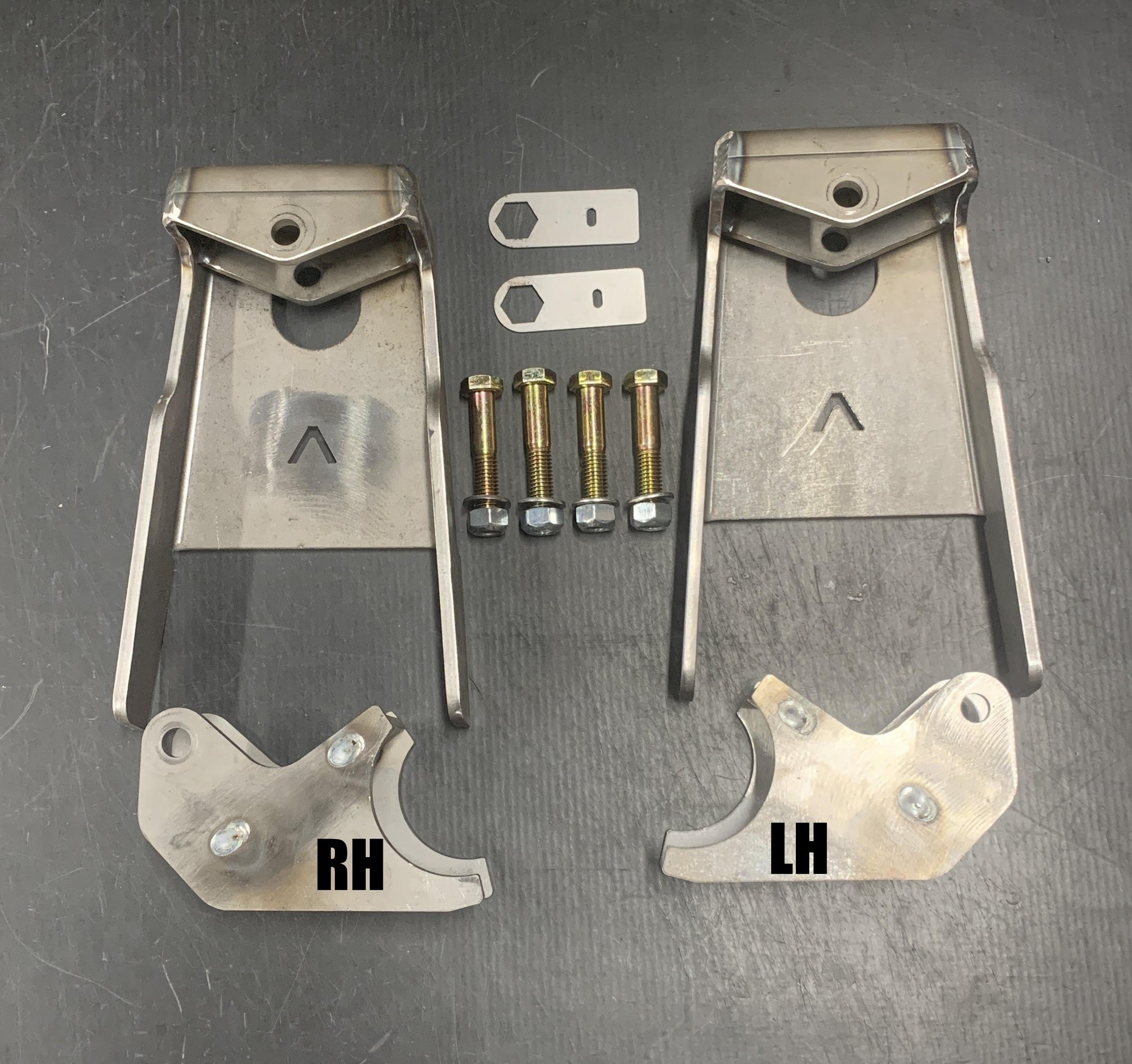 (2) axle tabs made from 1/4" steel, have LH&RH tabs for necked down stock axle tube