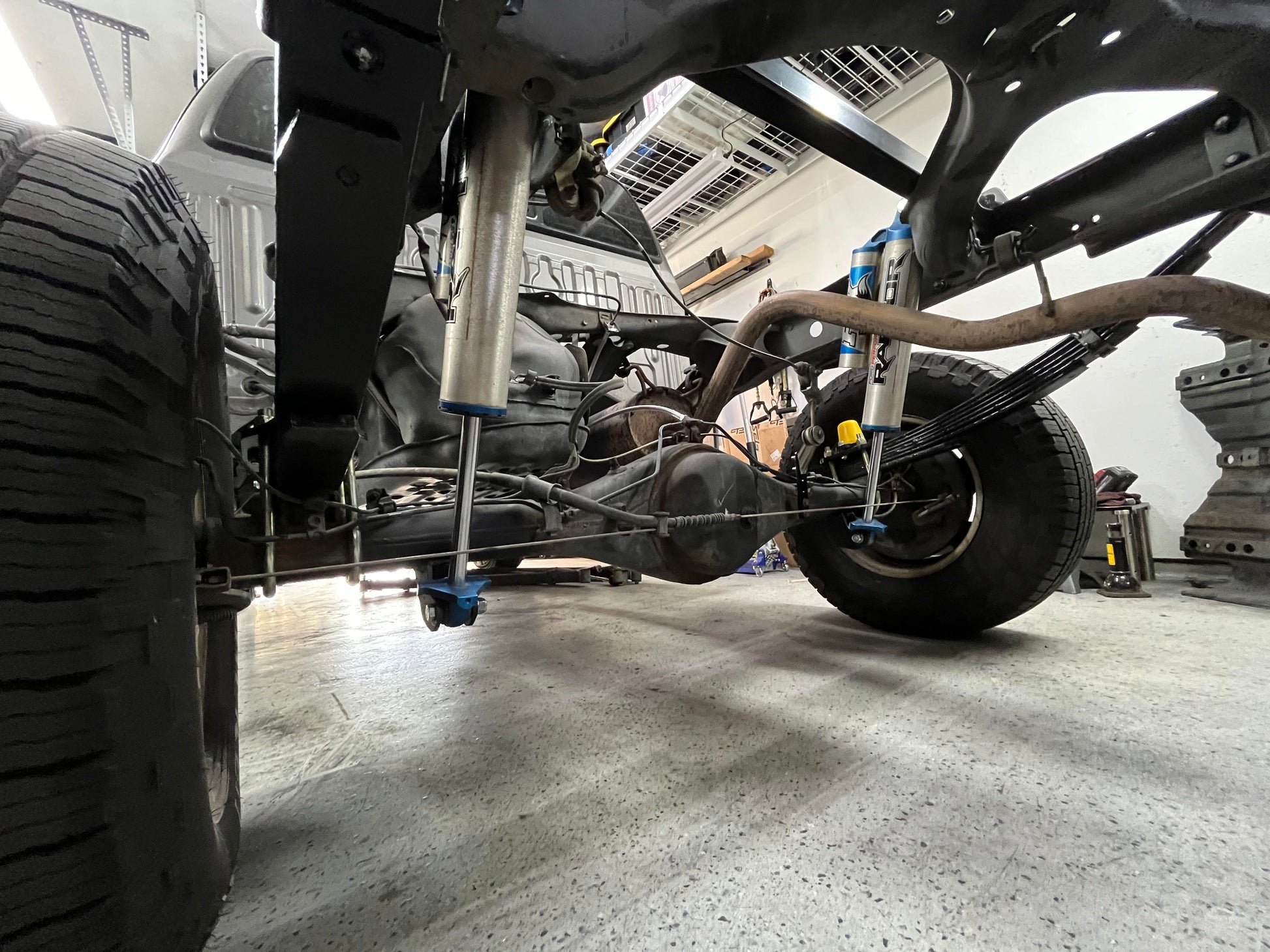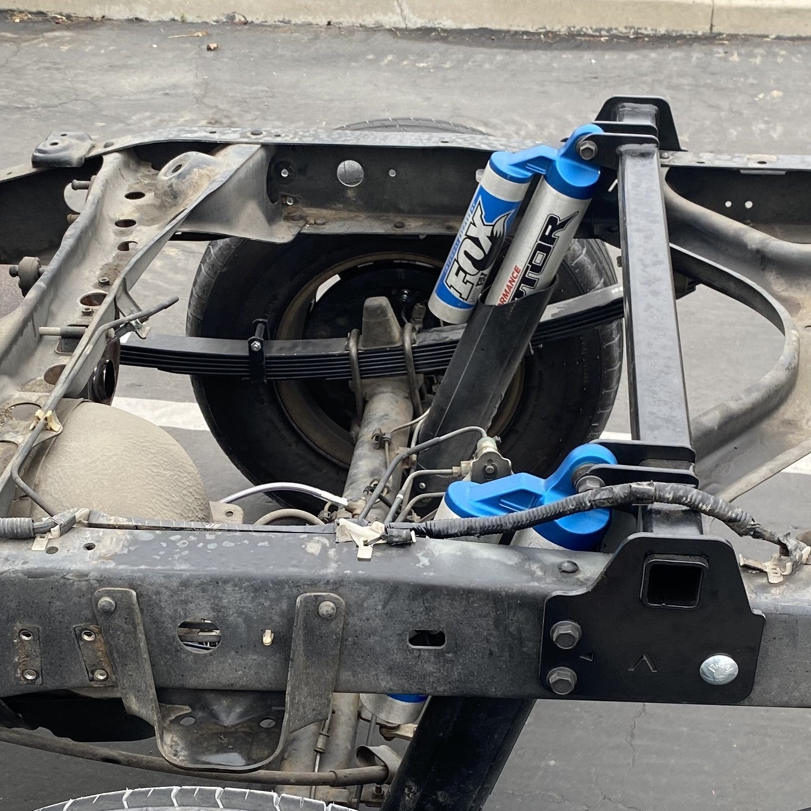 Archive's relocation kit allows you to fit longer shocks under the bed to gain droop travel without losing critical bump travel for Spring Over Axle (stock) ONLY, not compatible with Long Travel SUA conversion. Makes unbolting shock much easier with thru-bolt rod ends.