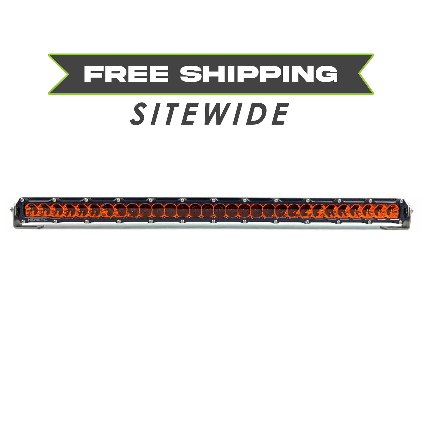 The Heretic 50" Amber LED light bar is a beast of a light when it comes to LED light bars.It truly turns darkness into light. These high performance 6-seriesamber LED light bars are designed and manufactured in the USA, housed in CNC machined aircraft-grade aluminum, and outfitted with best-in-class circuit boards that allow temperature control and long-lasting light. The 50‚ Amber LED light bar is recommended for forward-facing applications in aftermarket roof racks like PRINSU and UTV roll cages. This light bar is bestoptimized for dusty and foggy conditions. With the bracket included this is a 52" Amber LED Light Bar.
