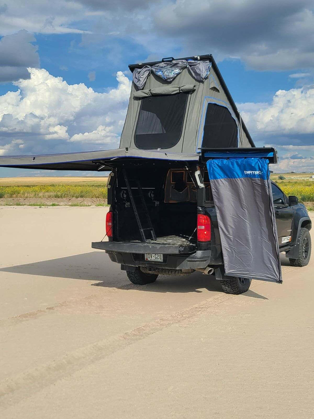 Instant Gratification: Deploys in seconds with the use of a powerful gas strut. Just pull the spring-loaded pin and the bracket pops out to its 90 degree position, freeing up space along the side of your rig and making accessories like the Shower/Bathroom Awning more functional.