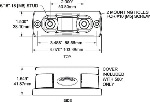 - Stainless steel studs provide resistance to corrosion and high torque for excellent electrical contact
