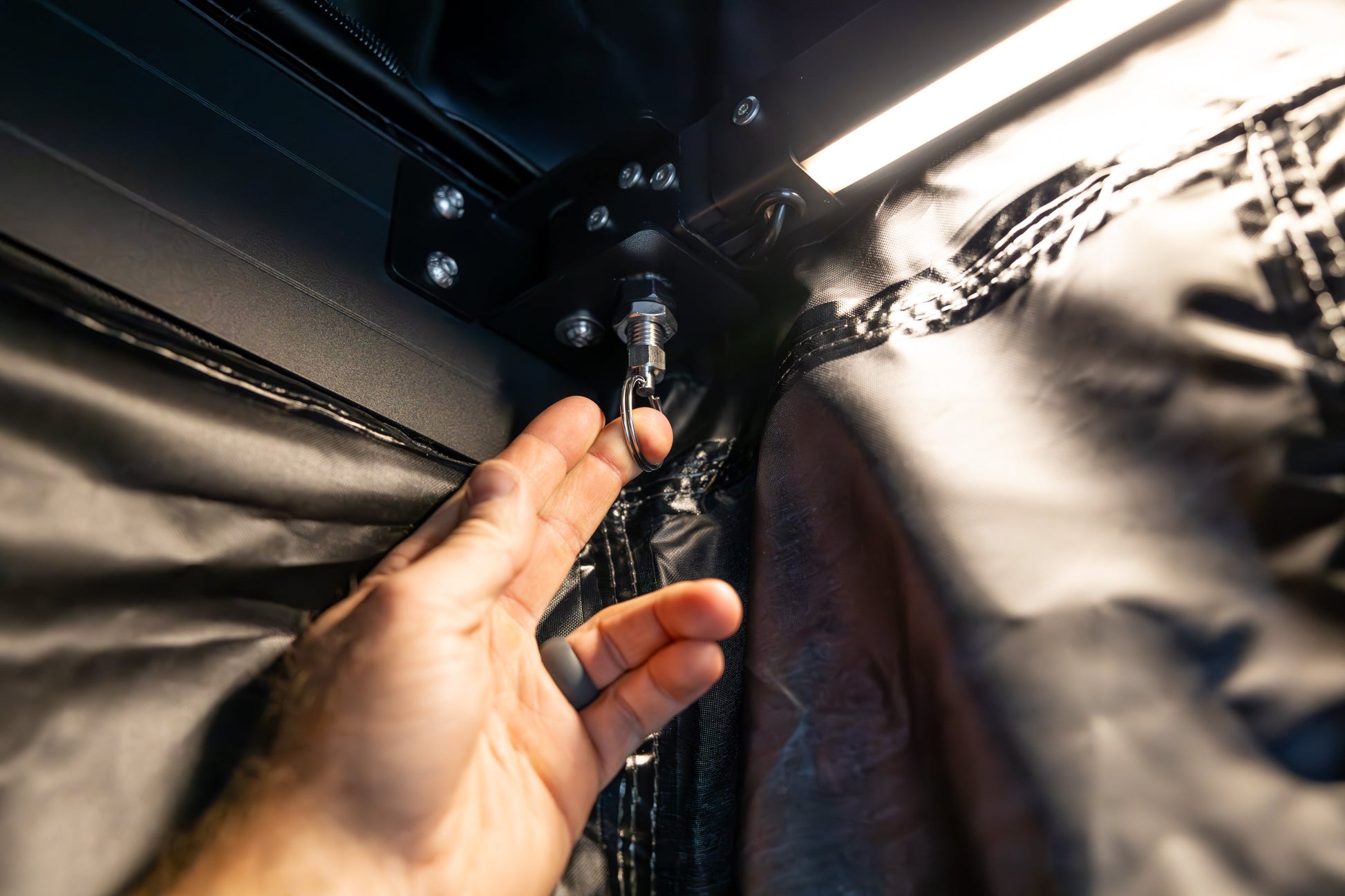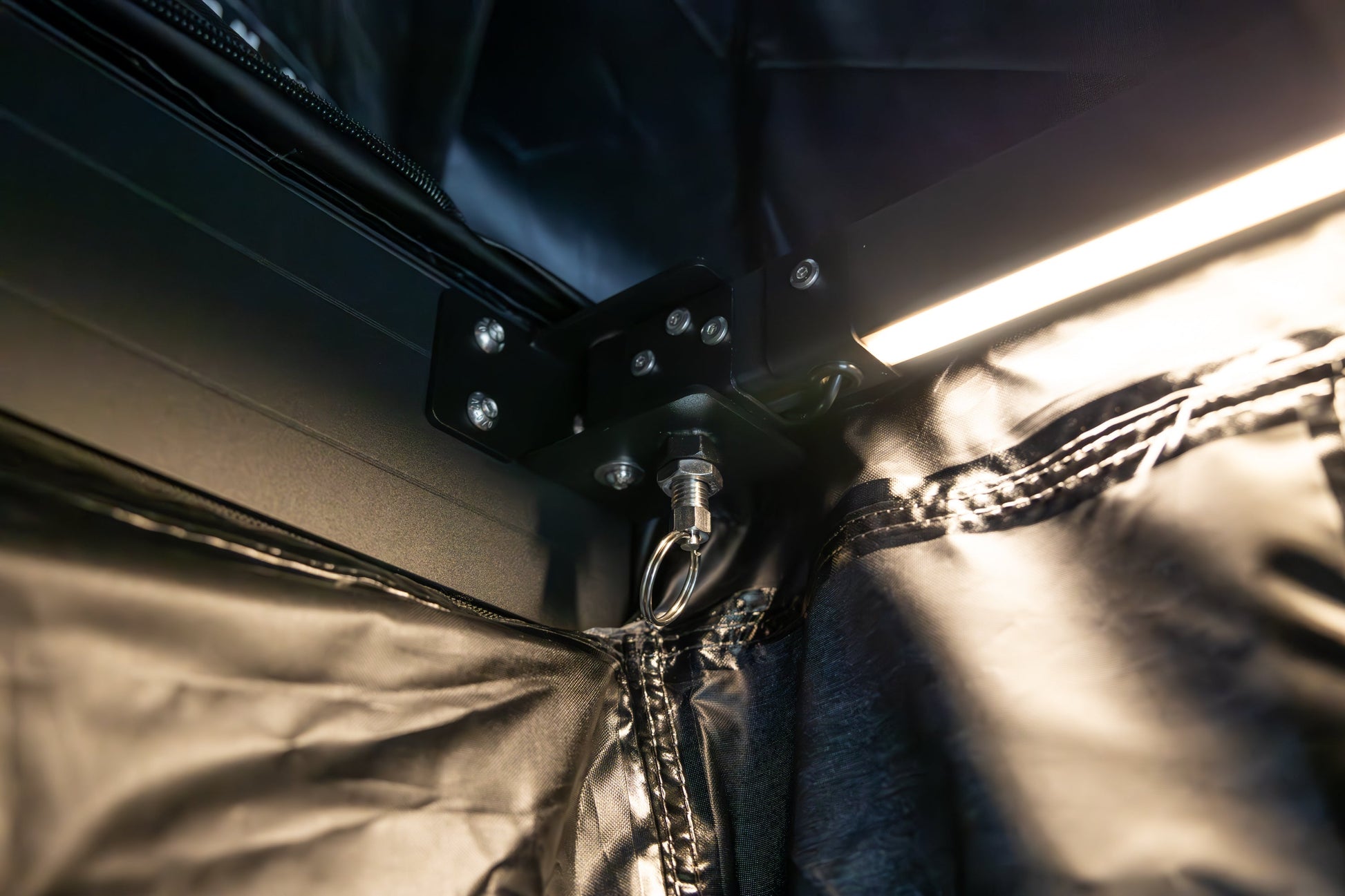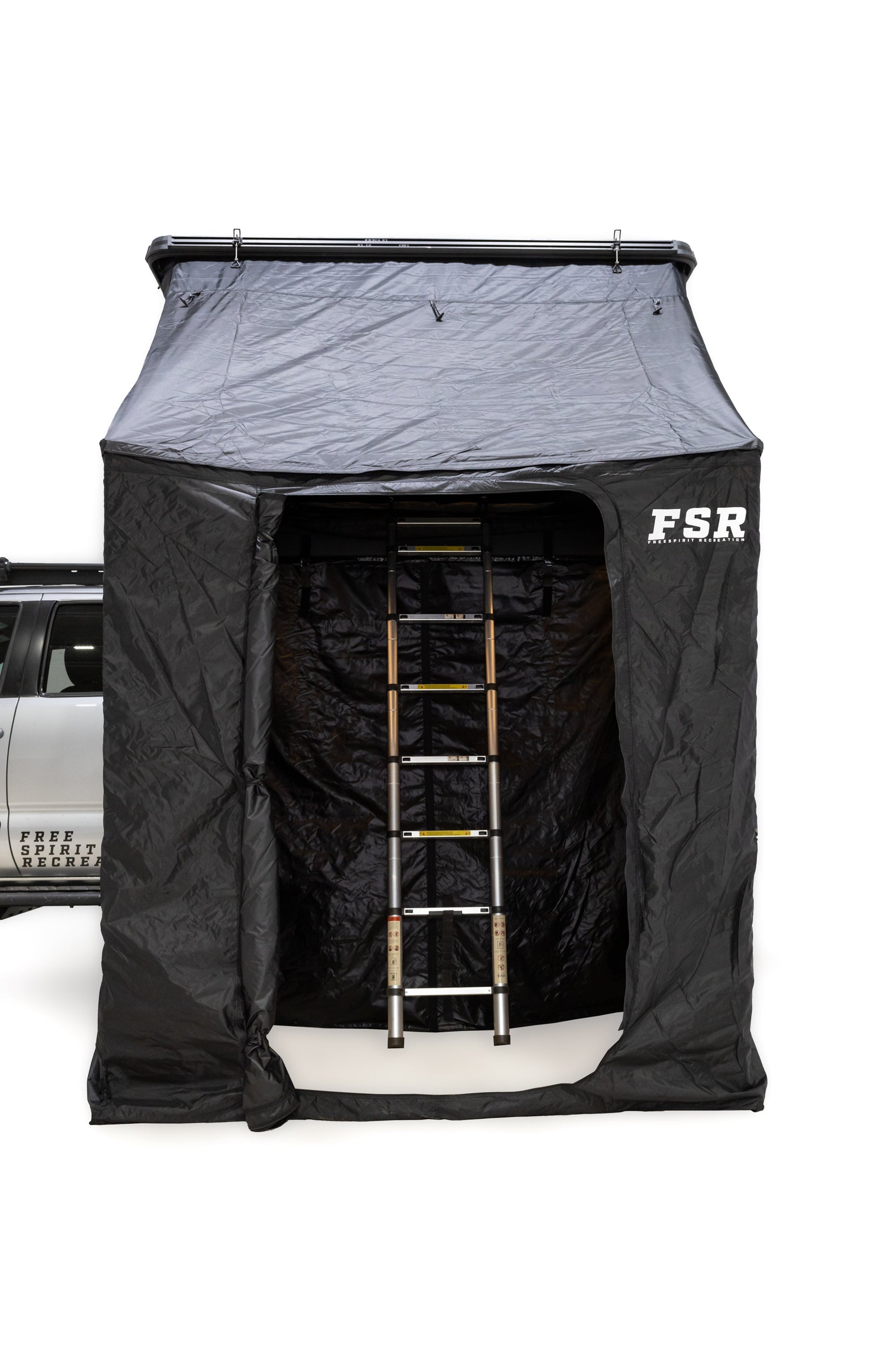 Awn-X Annex Room for Evolution rooftop tents by Freespirit Recreation is designed for complete coverage in and out of your RTT. At just 24lbs, this annex room can be used for extra sleeping space, a changing area, privacy room, space for the dogs, etc. Integrated fabric installed on the roof of your Evo rooftop tent attaches to the deployed arms on your Awn-X Annex room.