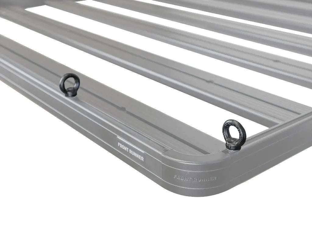 These steel tie down rings can be used to attach just about anything to the top, sides or bottom of your Front Runner Rack.Galvanized steel, powder coated black. Sold in pairs.