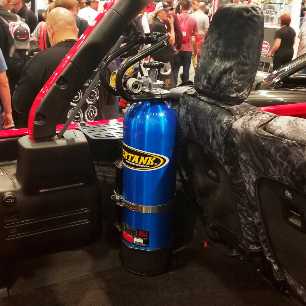 The Behind the Seat (BTS) Bracket is our favorite bracket design to date. The Jeep Wrangler has always been the most versatile vehicle on the market. With a few bolts, the doors come out, the windshield can fold down, and the top changes from hard top to soft top to no top. Our goal was to design a Power Tank mount that is just as versatile as your Jeep. This bracket has multiple adjustments to accommodate your 10, 15, or 20 lb. Power Tank in your JKU or JLU whether you're running the hard top, soft top, or topless.