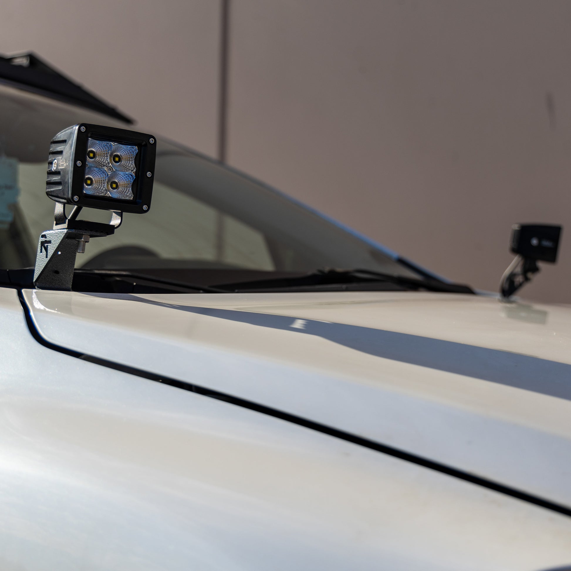 - Allows you to mount two lights above the hood