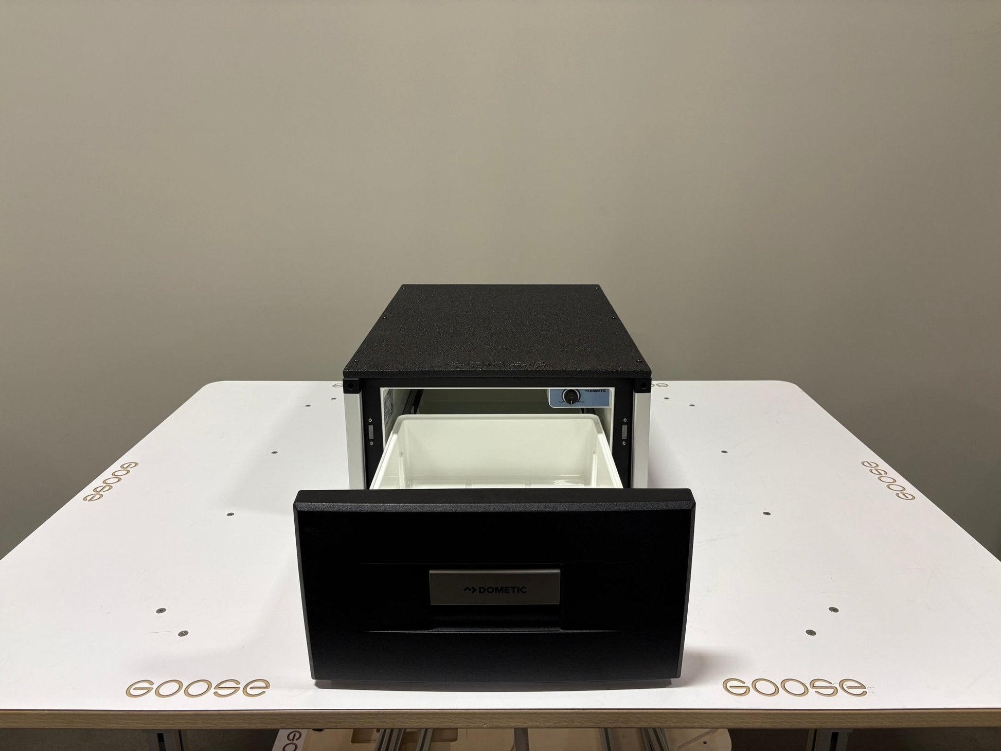 Enhance your rigs storage and convenience with our custom Dometic Fridge Drawer Module, designed specifically for the Dometic Coolmatic CD30 fridge. Built using our durable MaxLite extrusion, this unit features a Rectangular Top Plate crafted from high-quality Baltic birch and finished with a rugged bed liner material for long-lasting protection. The Dometic CD30 Fridge Drawer is included with the module.