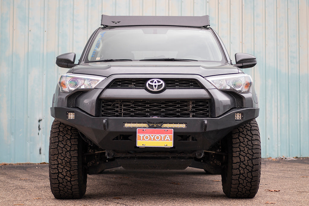 Flippable fairlead license plate mount for those required to run a front license plate. Allows for easy winch line access.