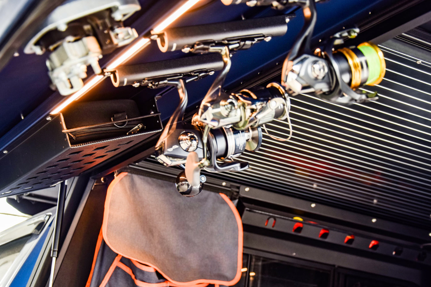 Optimal Accessibility: The Canopy Camper Fishing Reel Mount ensures that your fishing reels are within arm's reach. No more fumbling through your gear – this mount allows you to keep your reels securely stowed on the inside of the canopy door, providing quick and effortless access when needed.