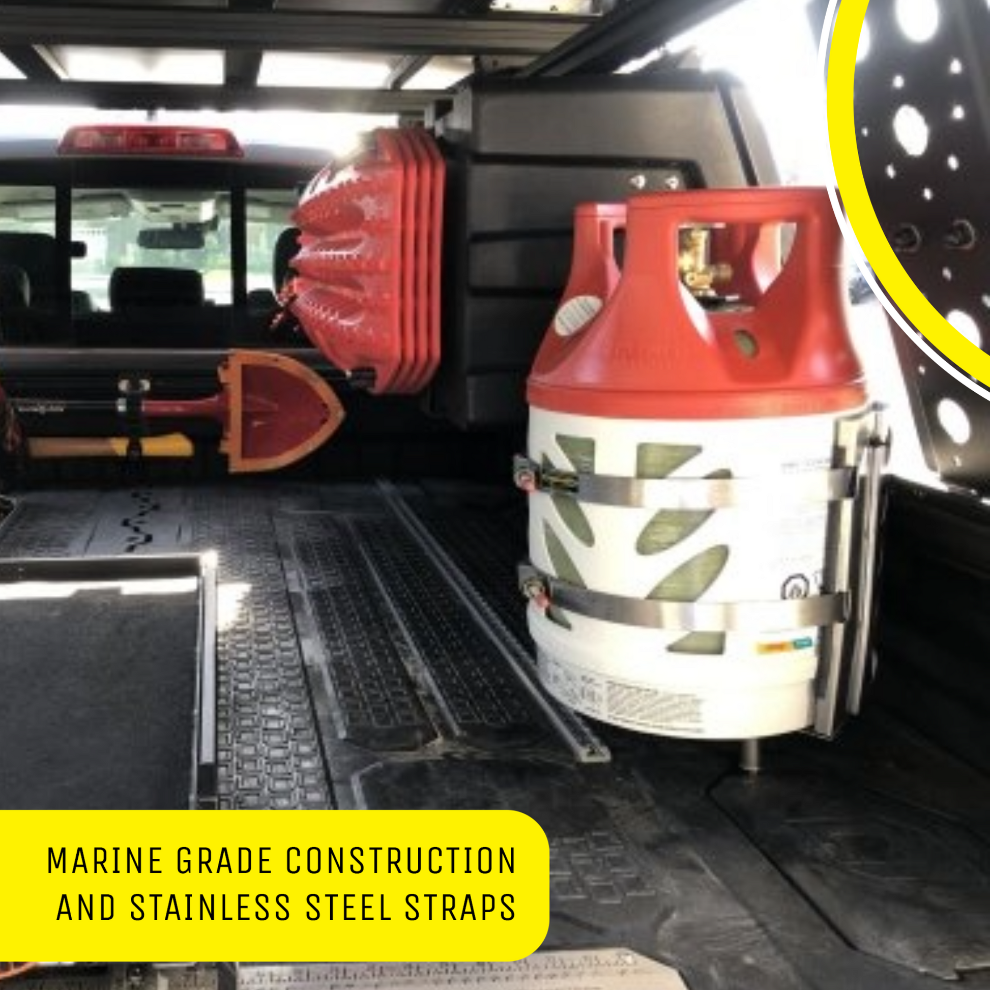 Mounting Bracket for Viking Composite Propane Tank from Power Tank. This marine-grade mounting bracket is the best way to carry Viking Propane Cylinders on your RV, trailer, or boat. The two straps hold the tank securely over rough, washboard roads or choppy sea water.