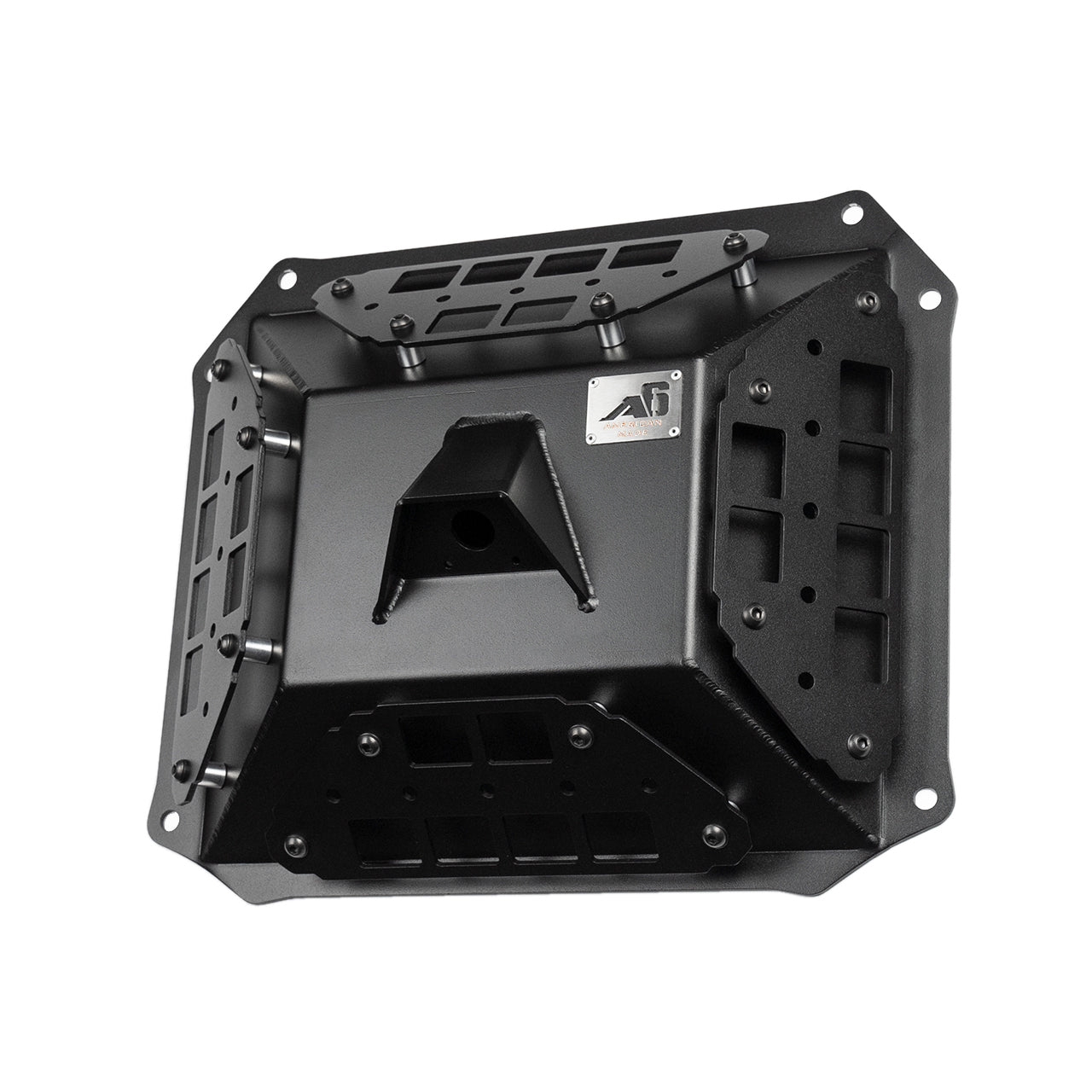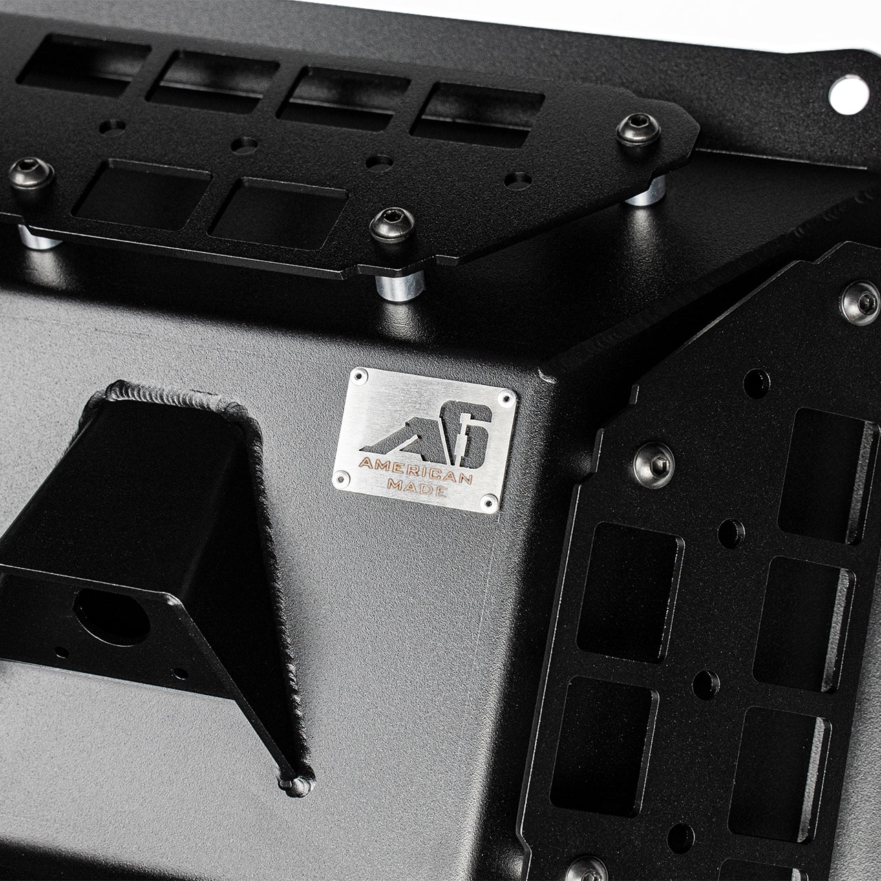 MOLLE pattern cutouts allow for mounting a range of camping and off-road accessories, securely strapped directly to the panel. Easy to install, bolts into factory locations utilizing machined aluminum adapters. The integrated camera and brake light mounts allow you to keep your factory back-up camera and brake light.