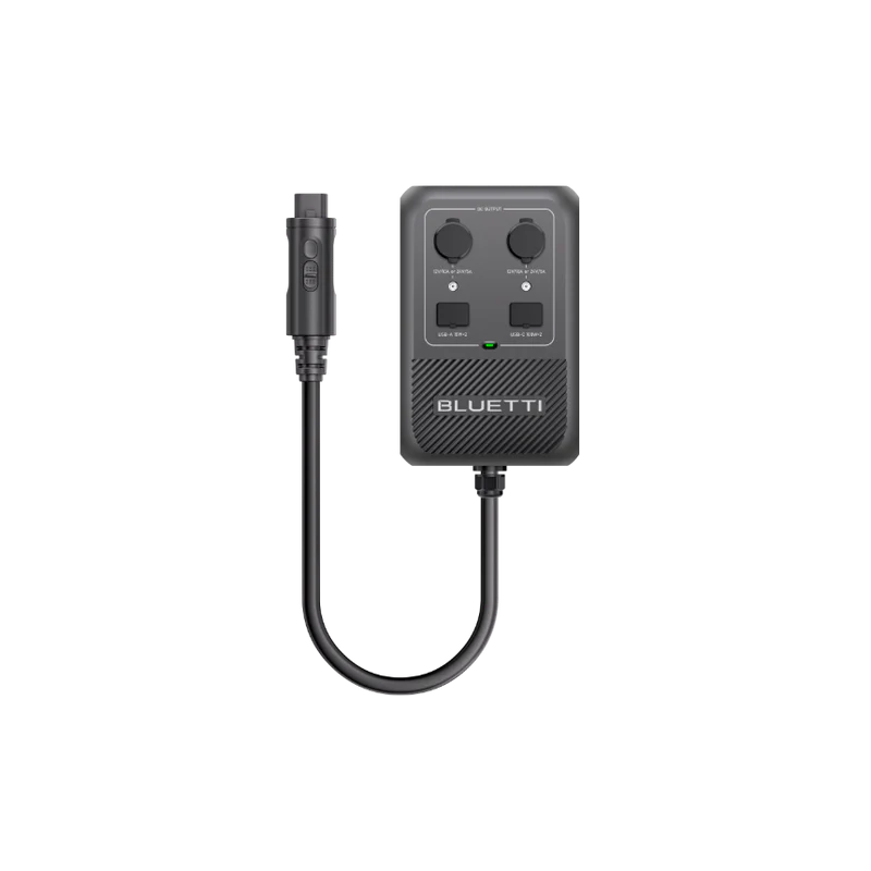 Function: A DC power hub that delivers up to 700W output with cigarette lighter, USB, DC5521, and 50A Anderson ports.