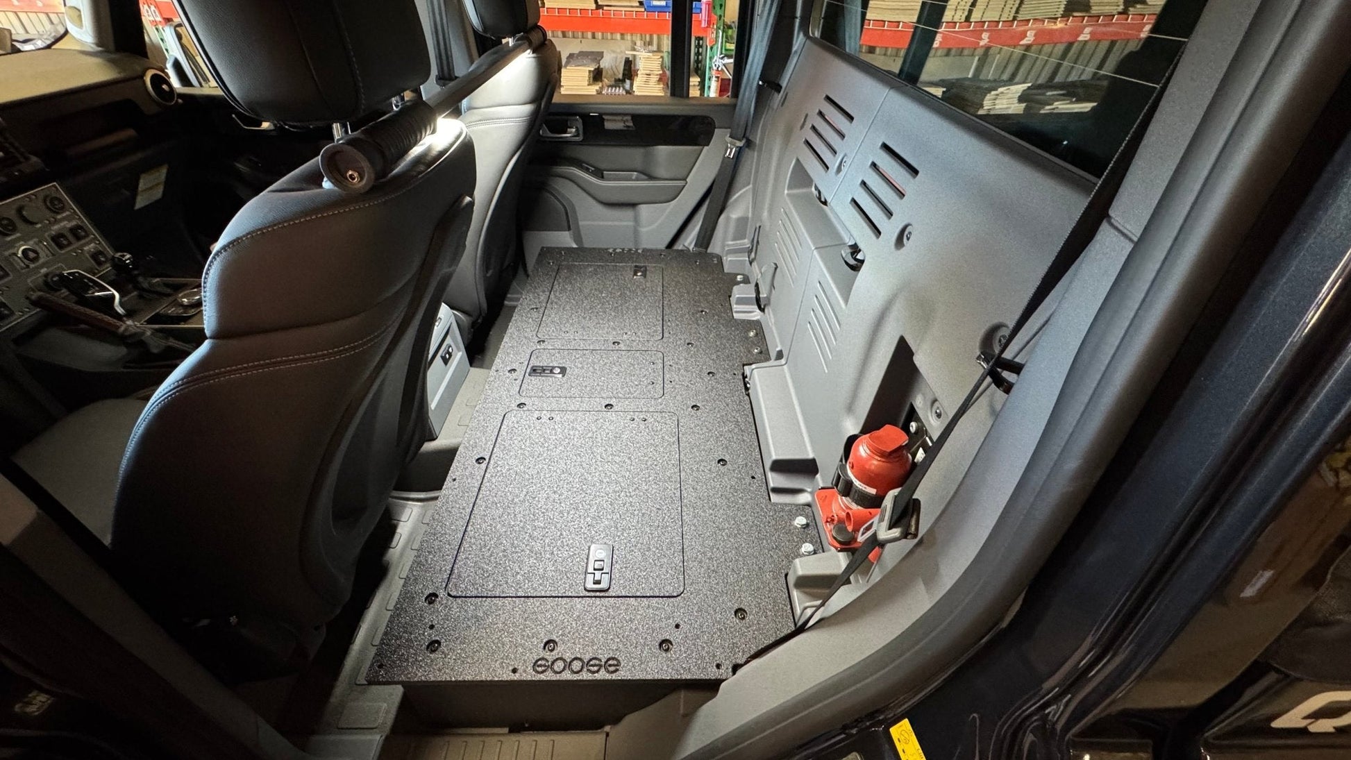 Maximize the functionality of your Ineos Grenadier Quartermaster with the Second Row Seat Delete Plate System™, engineered to provide ample storage space and compatibility with Goose Gear Modules or your own custom storage system and accessories. This 100% second-row delete requires the removal of the seat, seat frame, and the surrounding plastic trim panels that house electrical components under the factory seat.