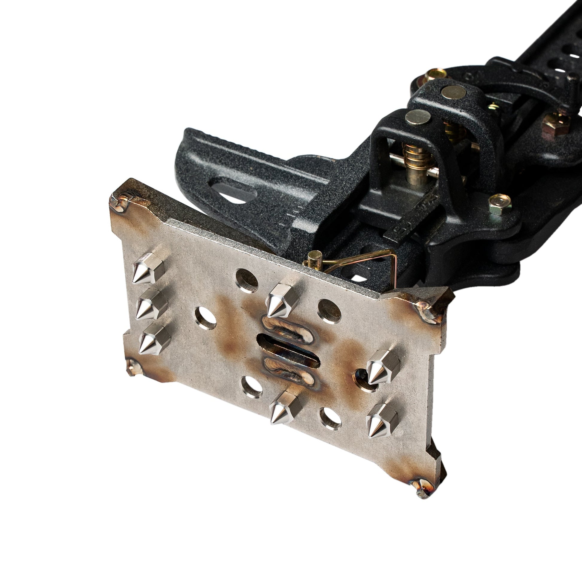 Footprint is 43% larger than the factory base and includes removable studs to aid in various terrains.