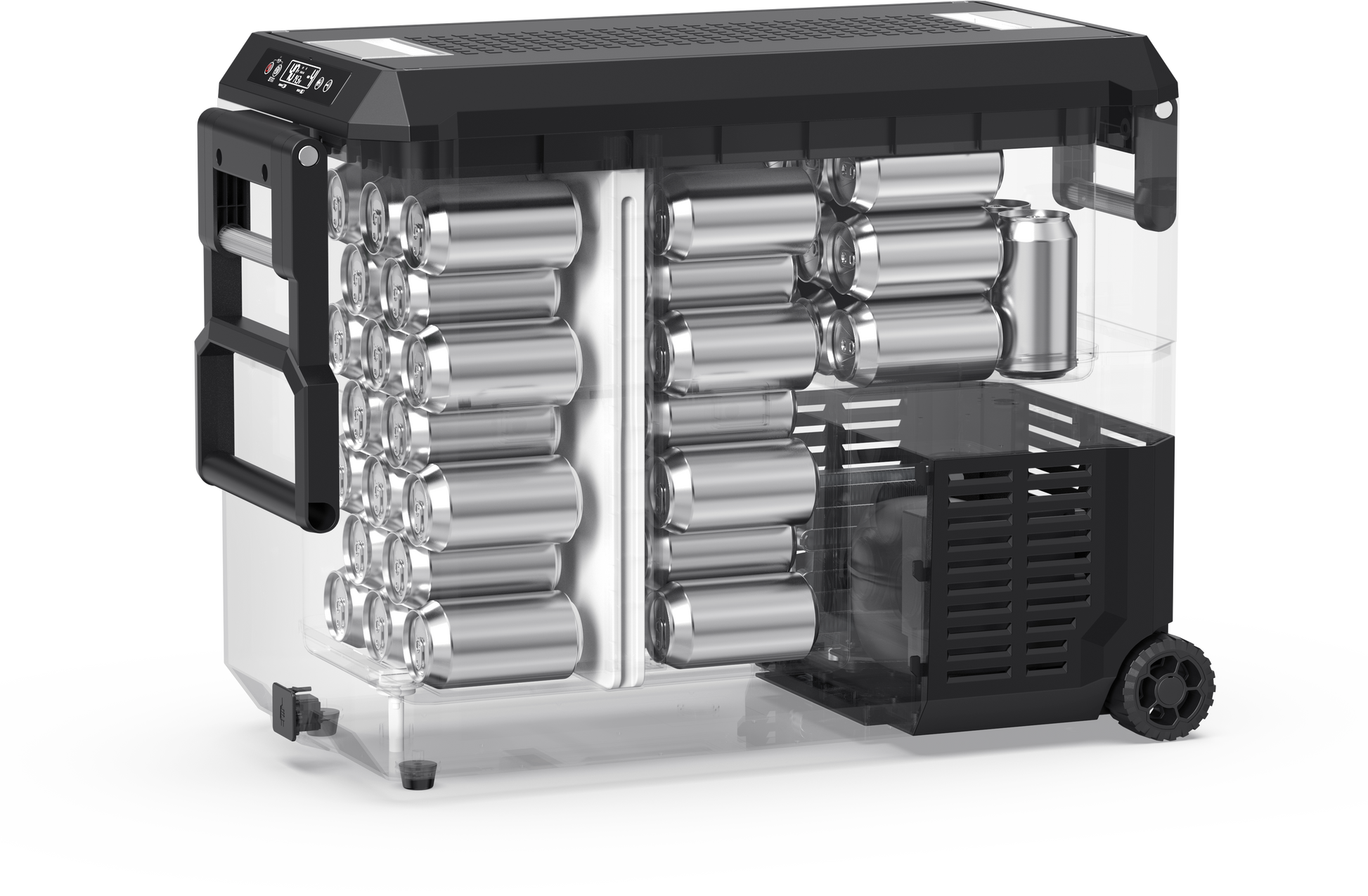 Our JP50 Prod easily transitions between single and dual zones with a broad -4°F to 68°F cooling range. Powered by a reliable SECOP (Danfoss) compressor (5-year warranty on compressor, 1 year for other parts), it features Bluetooth App Control for convenient temperature management on the go. Two handles, sturdy wheels, and a 40° tilt anti-vibration function ensure stable movement, while the reversible lid opens from the left, right, or detaches entirely for quick access. An optional UV lamp automatically sterilizes the interior after 30 minutes of corded use. Measuring 28.5" × 13.8" × 21" and weighing 44 lbs, the JP50 Pro is your perfect partner for hassle-free refrigeration or freezing—anytime, anywhere.