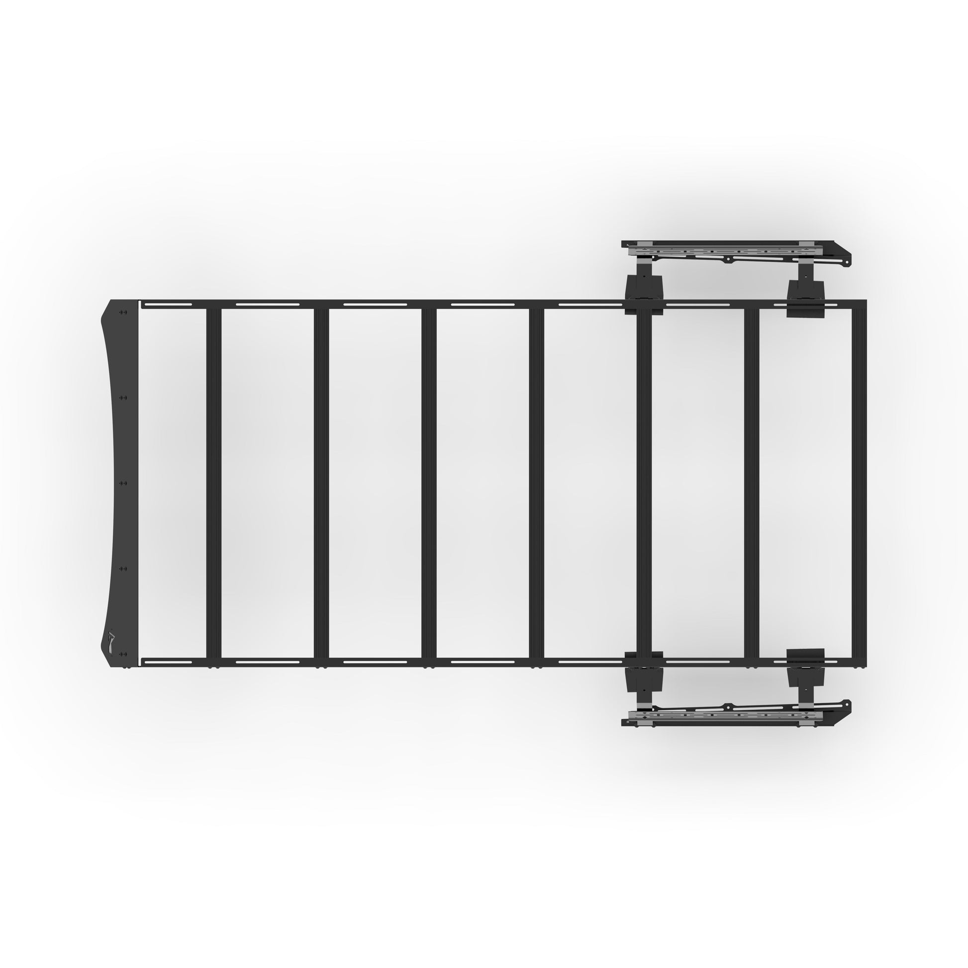Our one-piece side panels for the roof rack offer extreme durability and capacity to the rack itself. It also offers a 90-degree bent channel that gives the end-user a full 360 degree area to mount even more accessories. These panels also come precut with slots to add more extrusions and tools to the side panels, offering more modularity and customization.