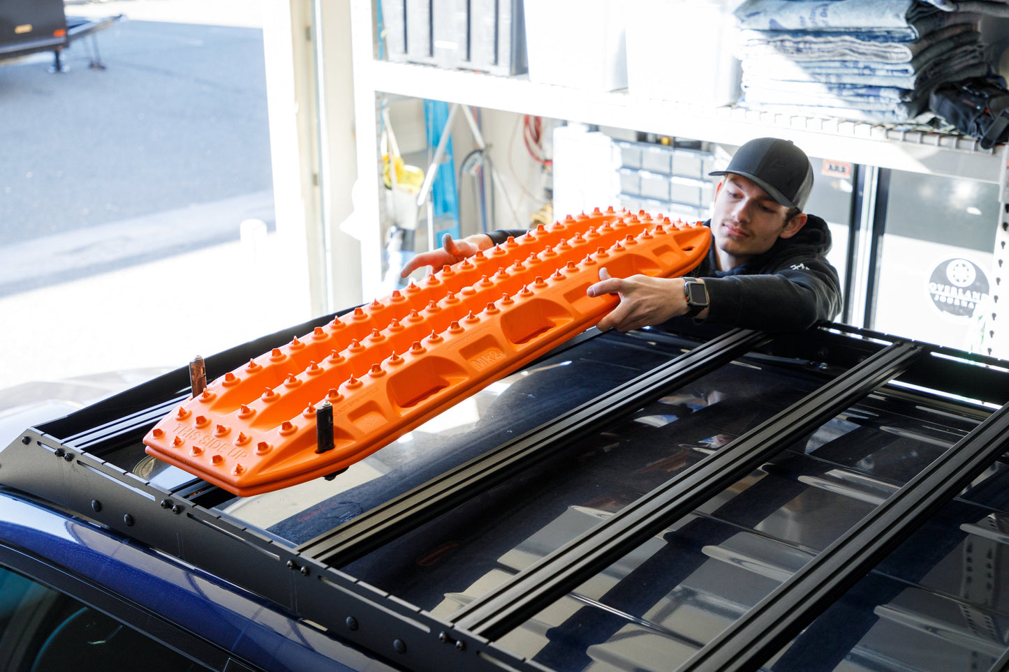 Secure your MAXTRAX® with the Overland Kitted Universal Mounting Plate. This versatile plate features specific mounting configurations for popular roof racks such as Front Runner®, Rhino-Rack®, and Prinsu®, and is also compatible with almost any other roof rack or crossbar on the market. Perfect for attaching your MAXTRAX® to virtually any surface, including roof racks, crossbars, campers, and flat surfaces, it features a one-inch total rise to accommodate the teeth on the bottom of MAXTRAX®.