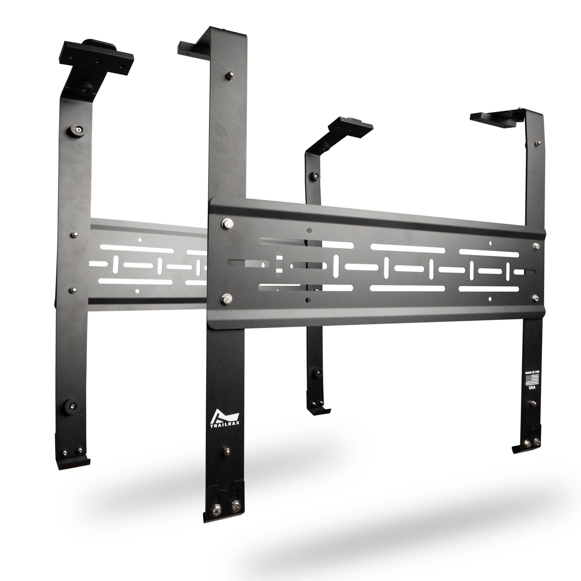 Do you ever go off-roading and wonder if you’ll have enough gas or storage? Pak Rax eliminates this concern! With a total of 16 extra gallons of gas or 80 lbs of equipment, you can be the hero on the trails! This means you can go longer and farther without worry. Pak Rax will stay firm and snug up against your rig and will not extend out beyond your mirrors. Thereby keeping the bracket system and storage devices safe. For those seeking overland adventure, this product is for you!!