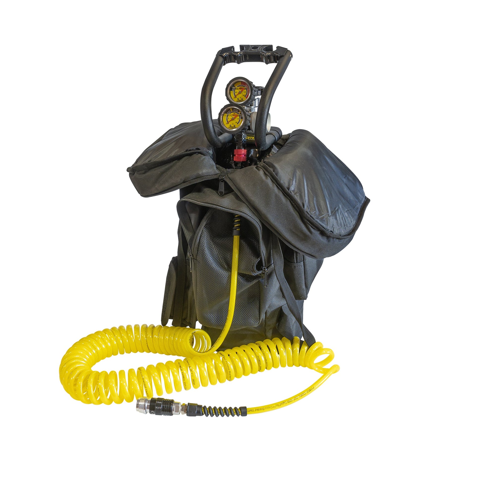 - Three pockets for storing hose, tire inflator, air tools, etc.