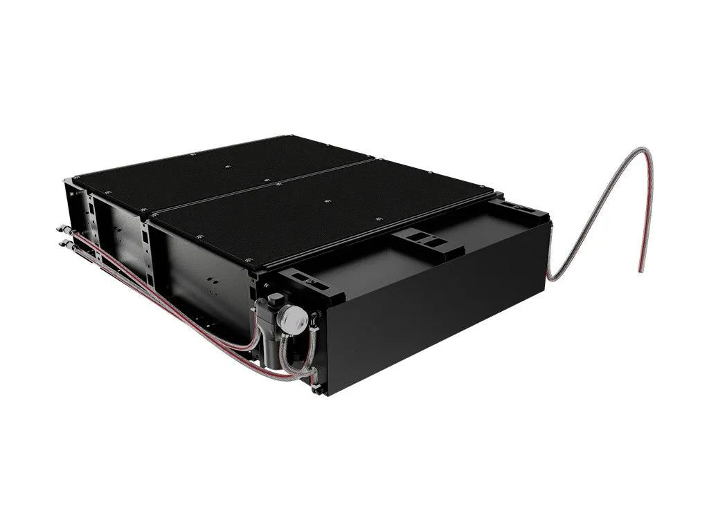 A 52L stainless steel water tank that fits behind the Front Runner Pickup drawer system. This water tank is positioned below the drawer deck to utilize the concealed space between the back of the drawer and the vehicle to preserve needed cargo space. Includes a 12V pump.