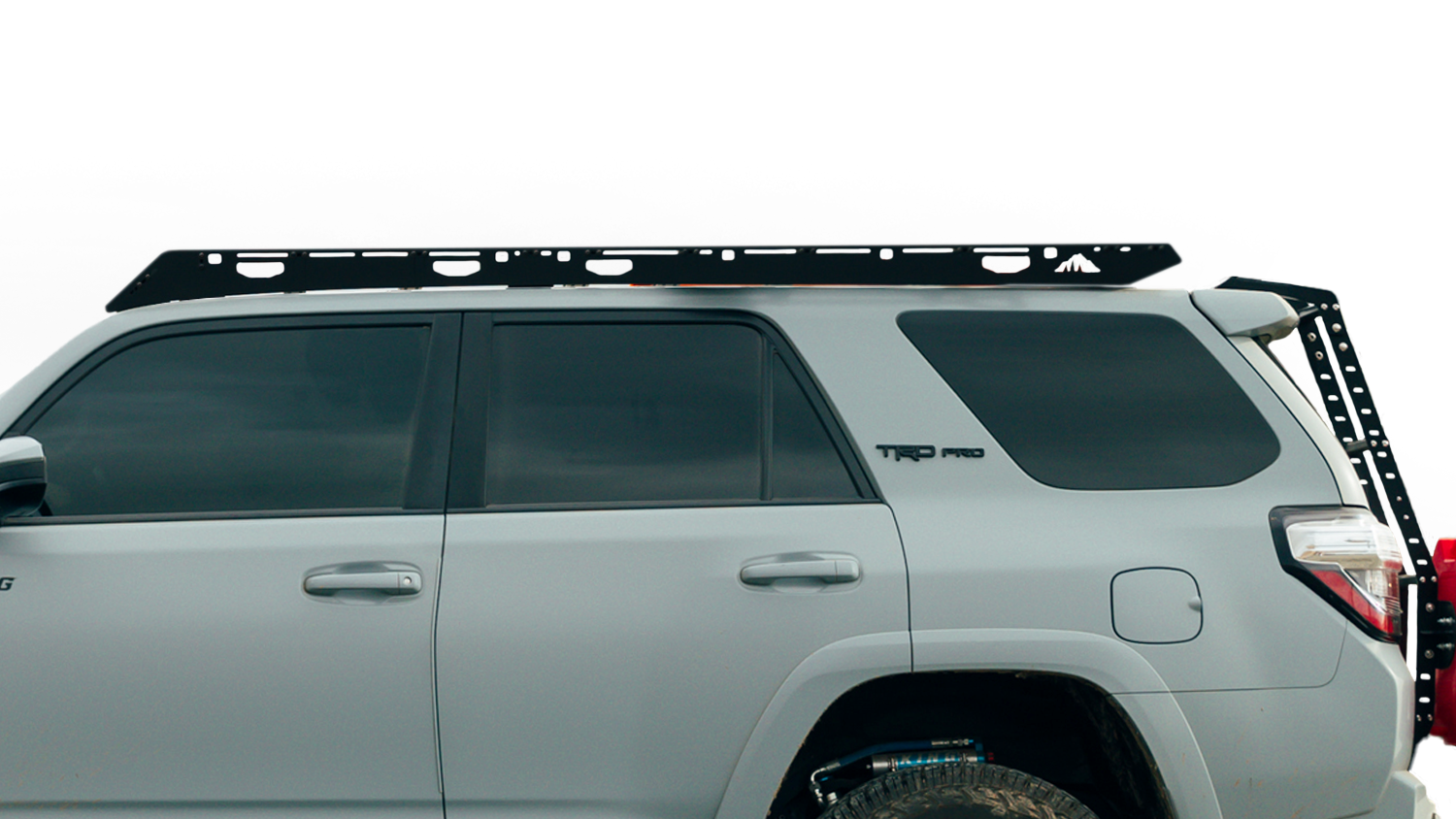 This full-length aluminum roof rack, for the 2010-2024 5th Gen 4Runner, expands on our lineup of tried and true rack systems. Our racks are some of the toughest on the market and are designed to get your gear to the places that matter the most. Explore more and worry less with our industry-leading ¼” thick aircraft-grade aluminum side panels and stainless steel hardware. Secure your gear by bolting into one of the 9 extrusion crossbars or by strapping it directly to the side plates. This rack is “drill-free” and requires zero modification to your vehicle.