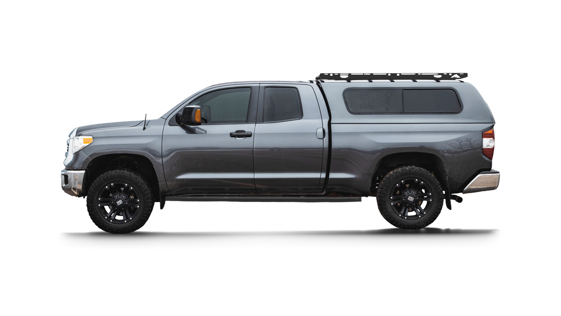 This aluminum roof rack is for small, mid & full-size trucks including the Toyota Tacoma, Tundra, Ford F Series, Ram, Chevy, and more. Our racks are some of the toughest on the market and are designed to get your gear to the places that matter the most. Explore more and worry less with our industry-leading ¼” thick aircraft-grade aluminum side panels and stainless steel hardware. Secure your gear by bolting into one of the extrusion crossbars or by strapping it directly to the side plates. This rack is “drill-free” and requires zero modification to your vehicle.