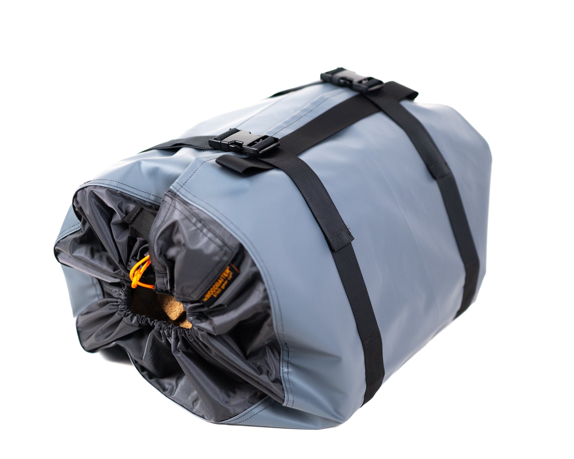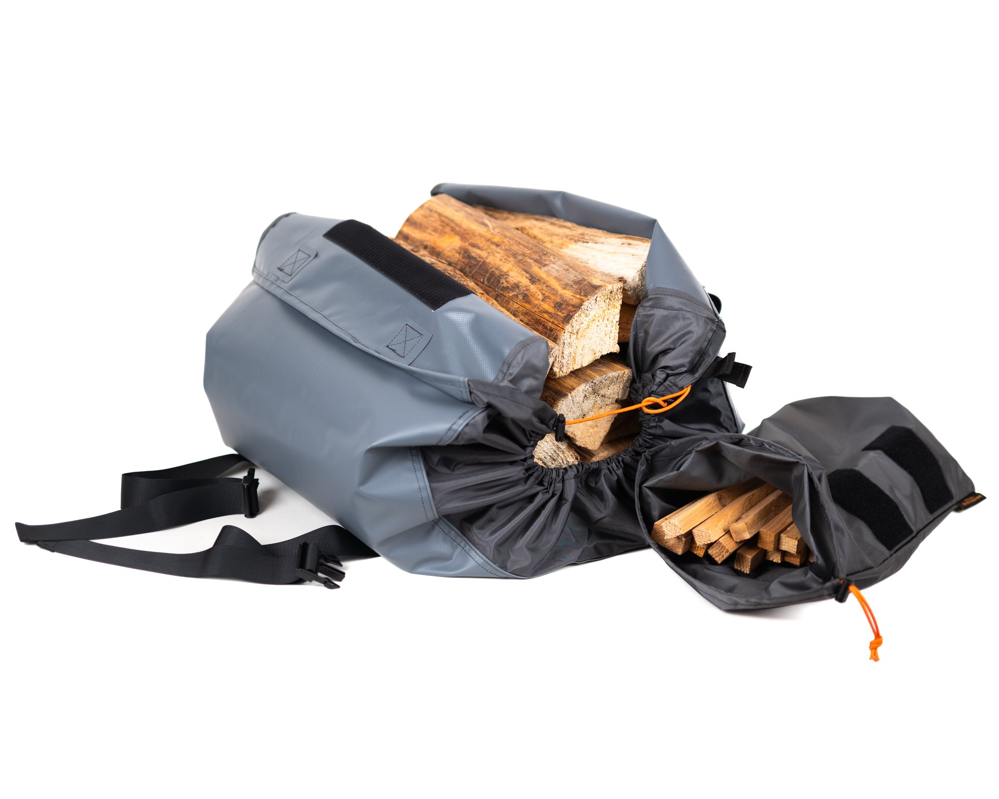 A campfire is a comforting part of enjoying the beauty of the great outdoors. However, transporting firewood can often prove to be a tedious task that often results in a messy situation. The WoodGaiter® is here to make your camping experience hassle-free whether you prefer to bring, purchase, or discover firewood on the trail. It can hold the equivalent of two standard pre-packaged bundles of wood, keeping everything secure and contained and adjusting to scale as the volume of firewood inside it varies.