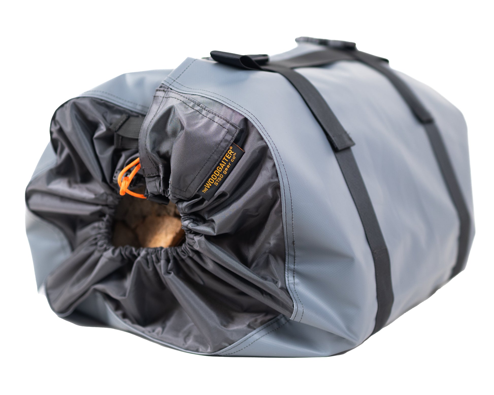 With its innovative gaiter design the WoodGaiter® can also be used to collect longer pieces of firewood along the way. It strikes the perfect balance of allowing moisture to escape while shielding firewood from the elements when carried outside of a vehicle; and it prevents the spillage of debris when carried inside.
